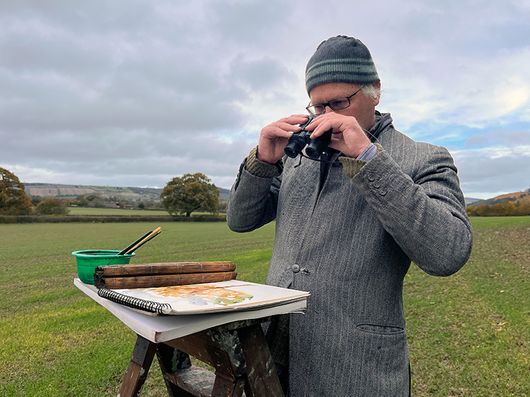 with boot polish. In this I feel a kinship with Nolan, the resourcefulness to use what is at hand. Nolan spent many hours watching the changing light across the Hindwell Valley where The Rodd sits. I too am captivated.
