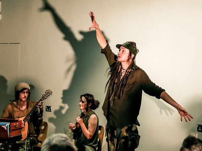 In this debut performance The Ragged Storytelling Collective; Kestrel, Heulwen and Hazel, weave their unique patchwork vision, stitching the raw energy of punk storytelling with a haunting thread of Welsh folk melody and song in this fiercely modern epic.